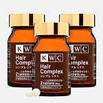 KWC Комплекс для волос (KWC Hair Complex) – биодобавка из Японии для улучшения состояния волос, ногтей, кожи головы. Сбалансированная формула, включающая витамины группы В (В1, В6, В7, В12), метилсульфонилметан (МСМ), гидролизованный кератин, цинк, селен, экстракт зерен проса и порошок морской водоросли ламинарии, разработана японскими фармацевтами для решения проблем с выпадением, замедлением роста, истончением волос.